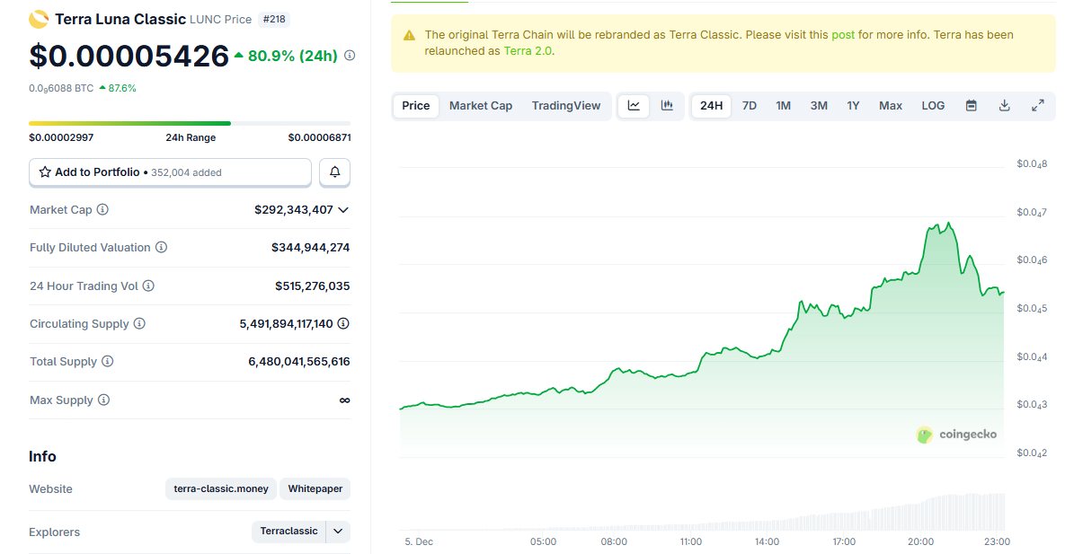The rally also coincides with renewed attention on Do Kwon’s ongoing sentencing proceedings in the United States. Traders view developments toward legal conclusion as a potential reset point, allowing LUNC to trade like a legacy meme asset rather than a distressed one.