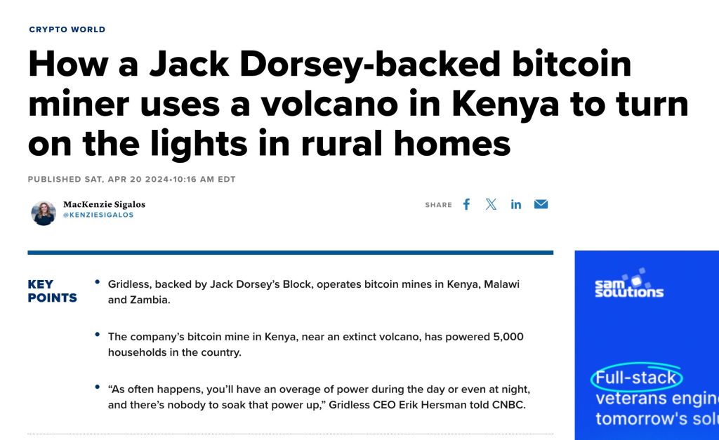 Additionally, CNBC reported that adding Bitcoin mining to a rural microgrid in Kenya “dropped the price of power from 35 cents per kilowatt hour to 25 cents per kWh” by monetizing previously wasted hydroelectric energy.