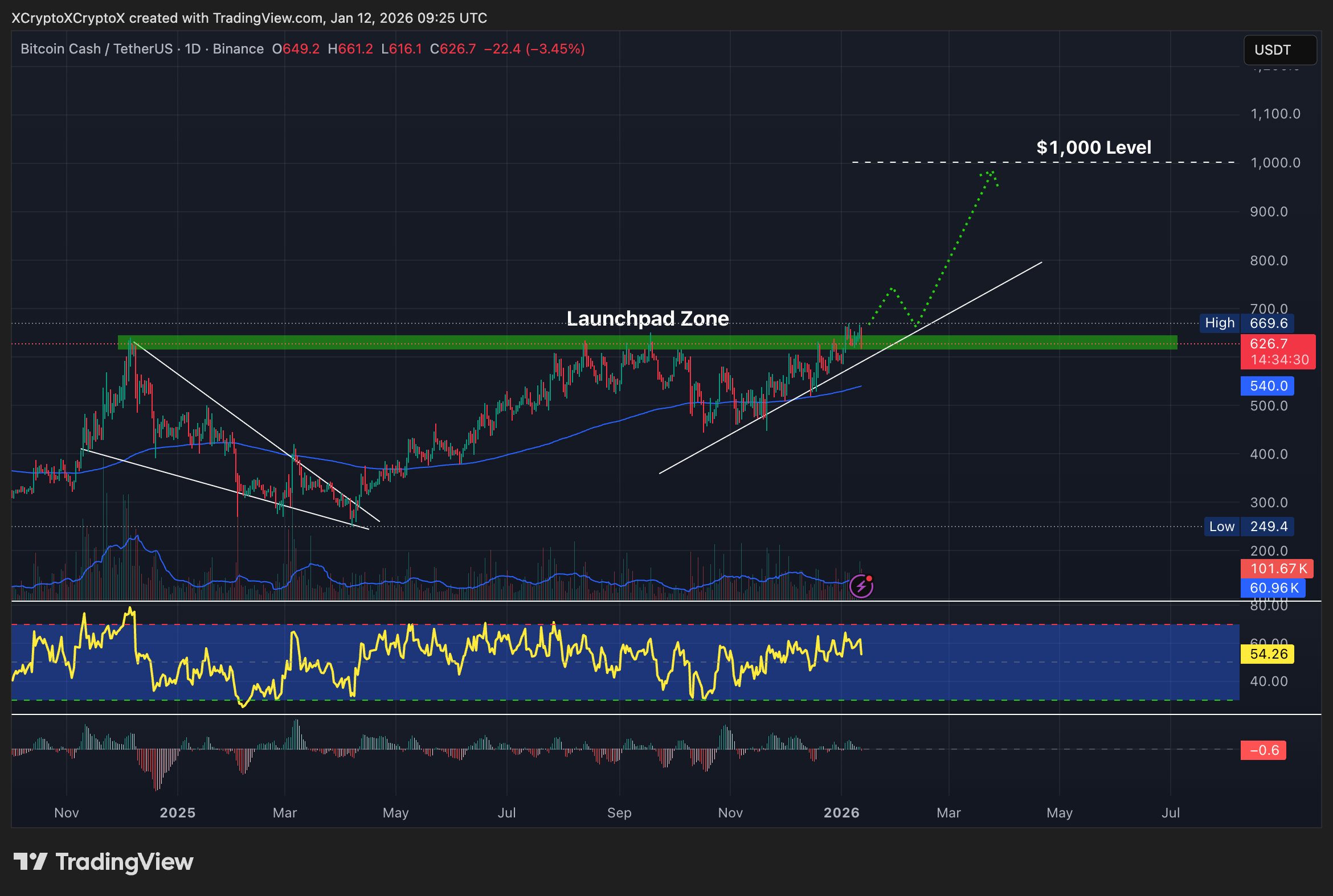 The current Bitcoin Cash price prediction looks increasingly bullish, with chart structure pointing toward a possible move to the $1,000 level if current support zones hold.