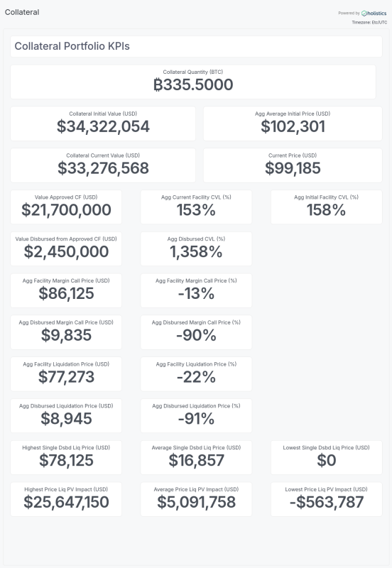 An instance of the risk-monitoring dashboard for bitcoin-backed loans that Galoy has created